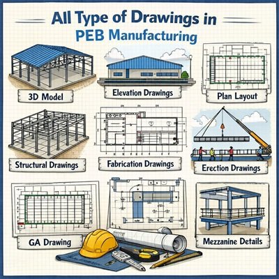 In Pre‑Engineered Buildings (PEB) manufacturing, drawings play a very important role because they guide the entire process of